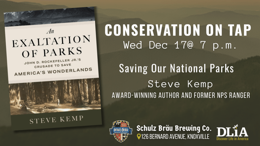 Join us this month’s Conservation on Tap for a special event featuring award-winning local author, former park ranger and dedicated DLiA Board Member, Steve Kemp, for a special conversation on the extraordinary partnership that helped protect America’s most iconic natural treasures. Kemp will share insights from his newly published book, An Exaltation of Parks: John D. Rockefeller Jr.’s Crusade to Save America’s Wonderlands, which uncovers how Rockefeller—working alongside National Park Service visionaries Stephen Mather, Horace Albright, and Arno Cammerer—shaped the national park system we know today.